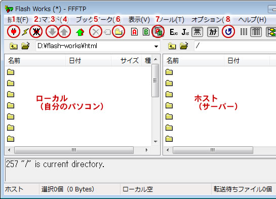 FFFTPの利用方法と各ボタンの機能について説明いたします。